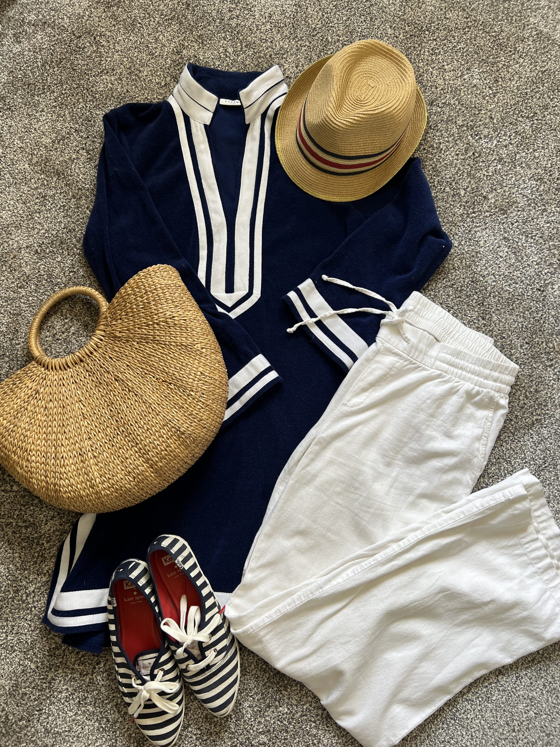 Charleston Sleeveless Shift Dress| Navy/White Trim Terry Tunic |Tulum Embroidered Tassel Cover Up