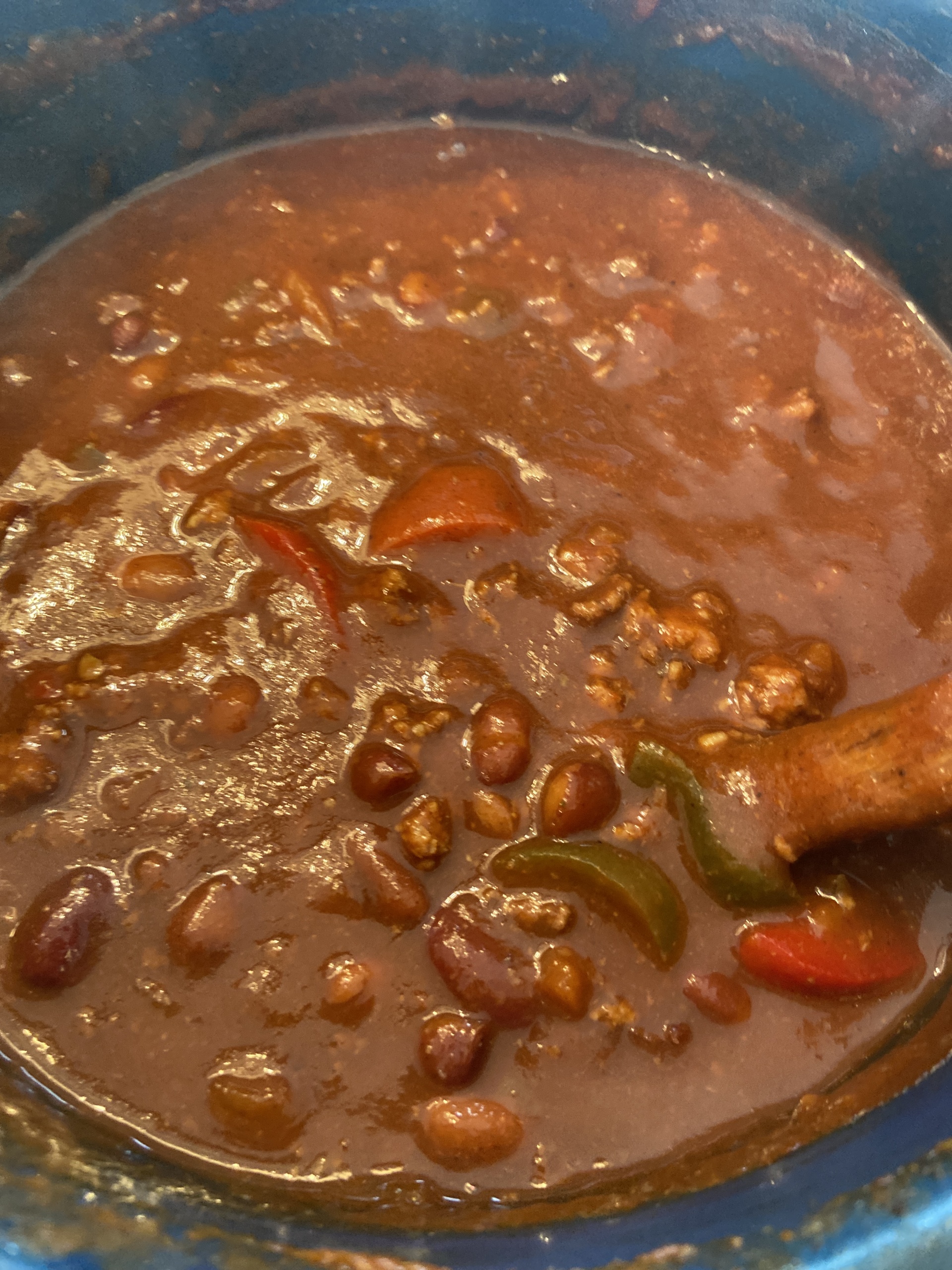 - 1 cup water or chicken broth (only if too thick) depending on how you like your Chili, you can add a little water)
