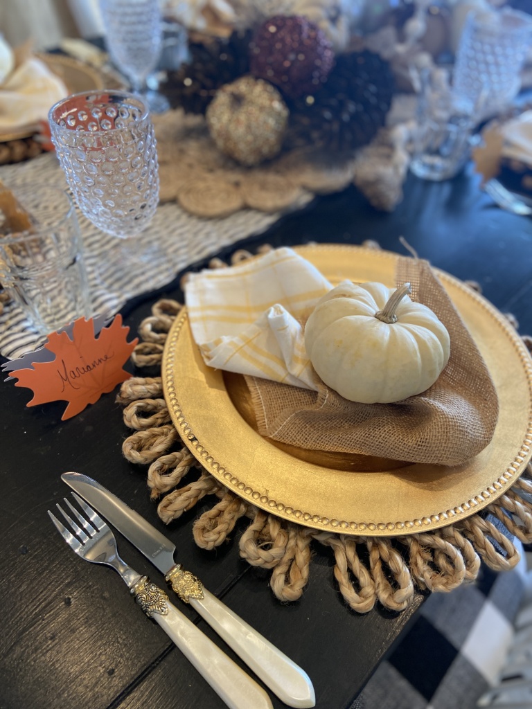 Above is a Fall Place setting Idea for a Fall luncheon or even a Thanksgiving table setting.