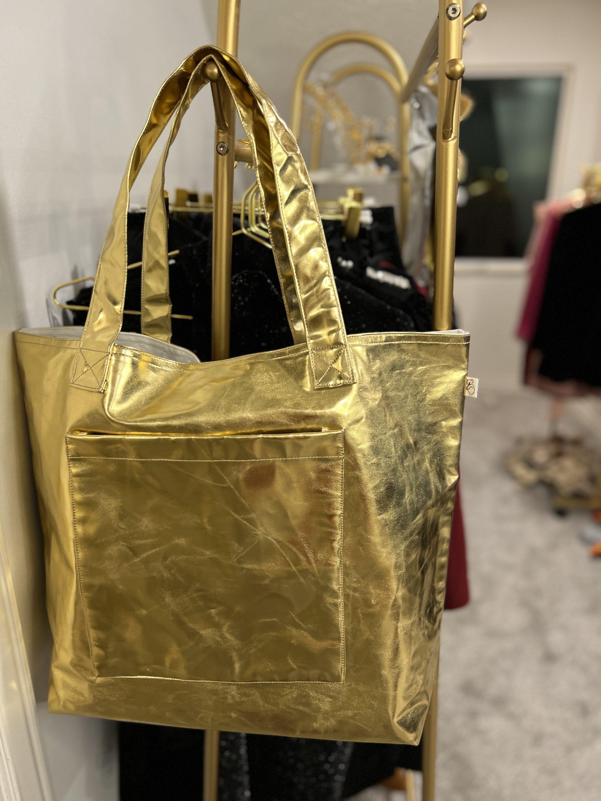 The accessories here are classic pieces yet very much on trend for spring. A flower-detail pin looks designer and has a channel vibe. A simple, traditional thin belt with a gold buckle and platform loafers add to this chic look, as do a great Hobo satchel/tote. I am finishing with gold jewelry to match the gold buttons on the jacket.
