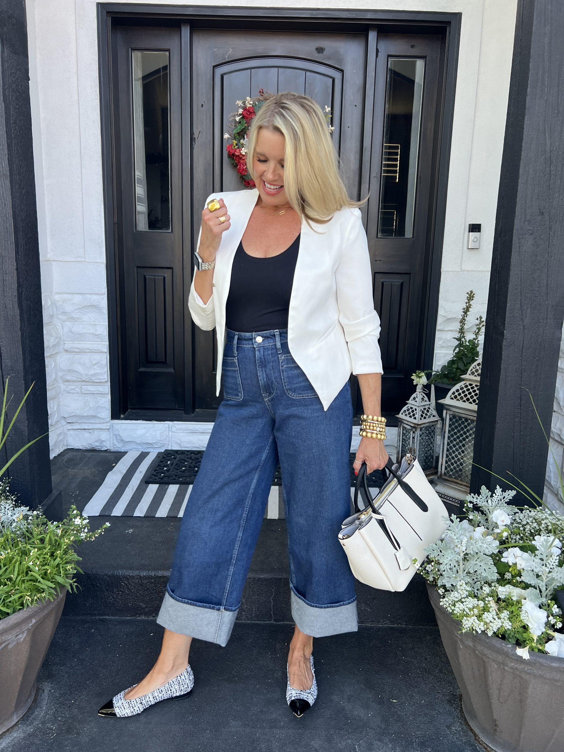 Risen Wide Cuff Jeans– fit tts in a 27 and work for tall girls under $70. They are back in stock. They have been my best seller for almost two years, and I wear them every season. Shop Here