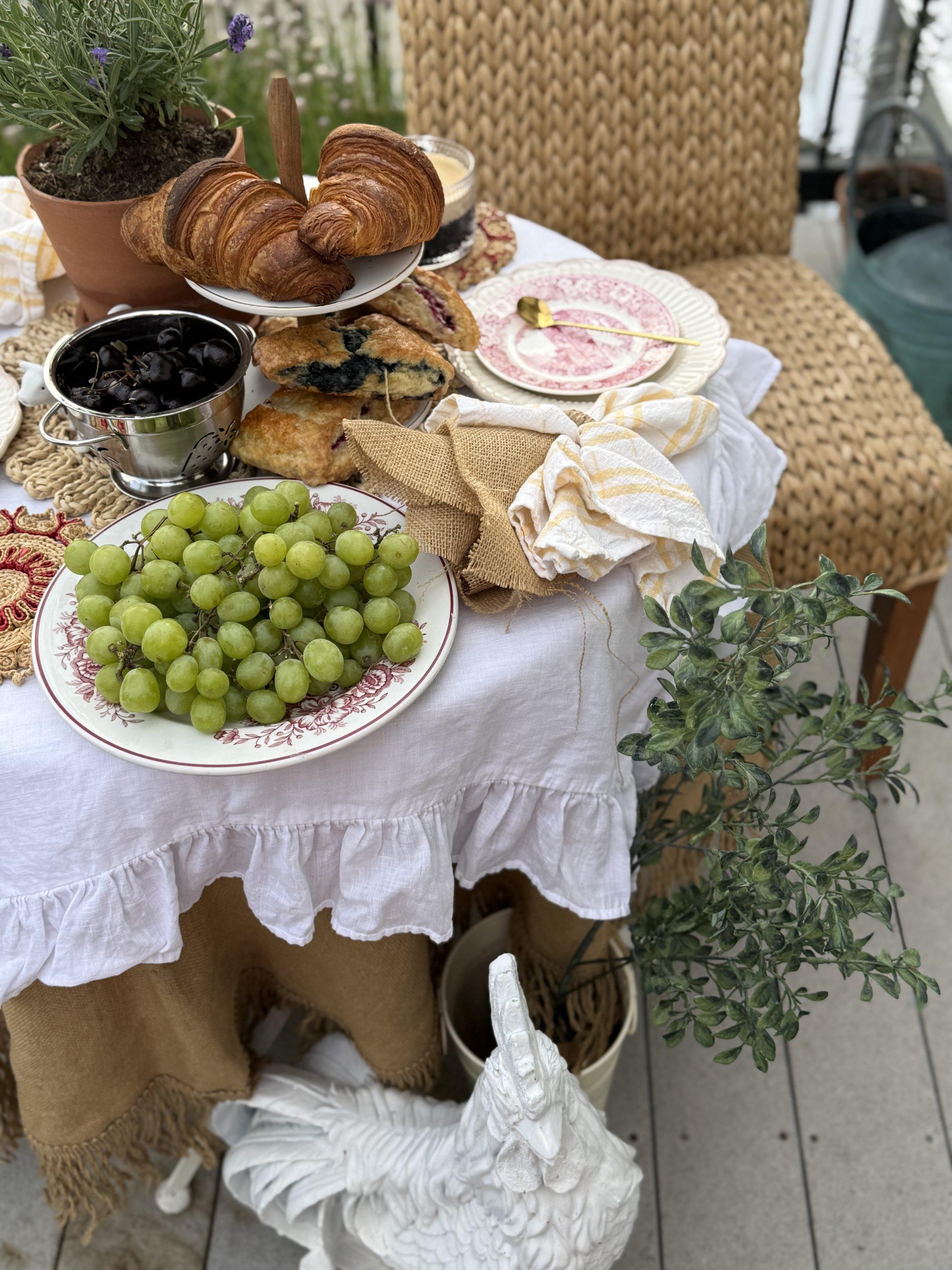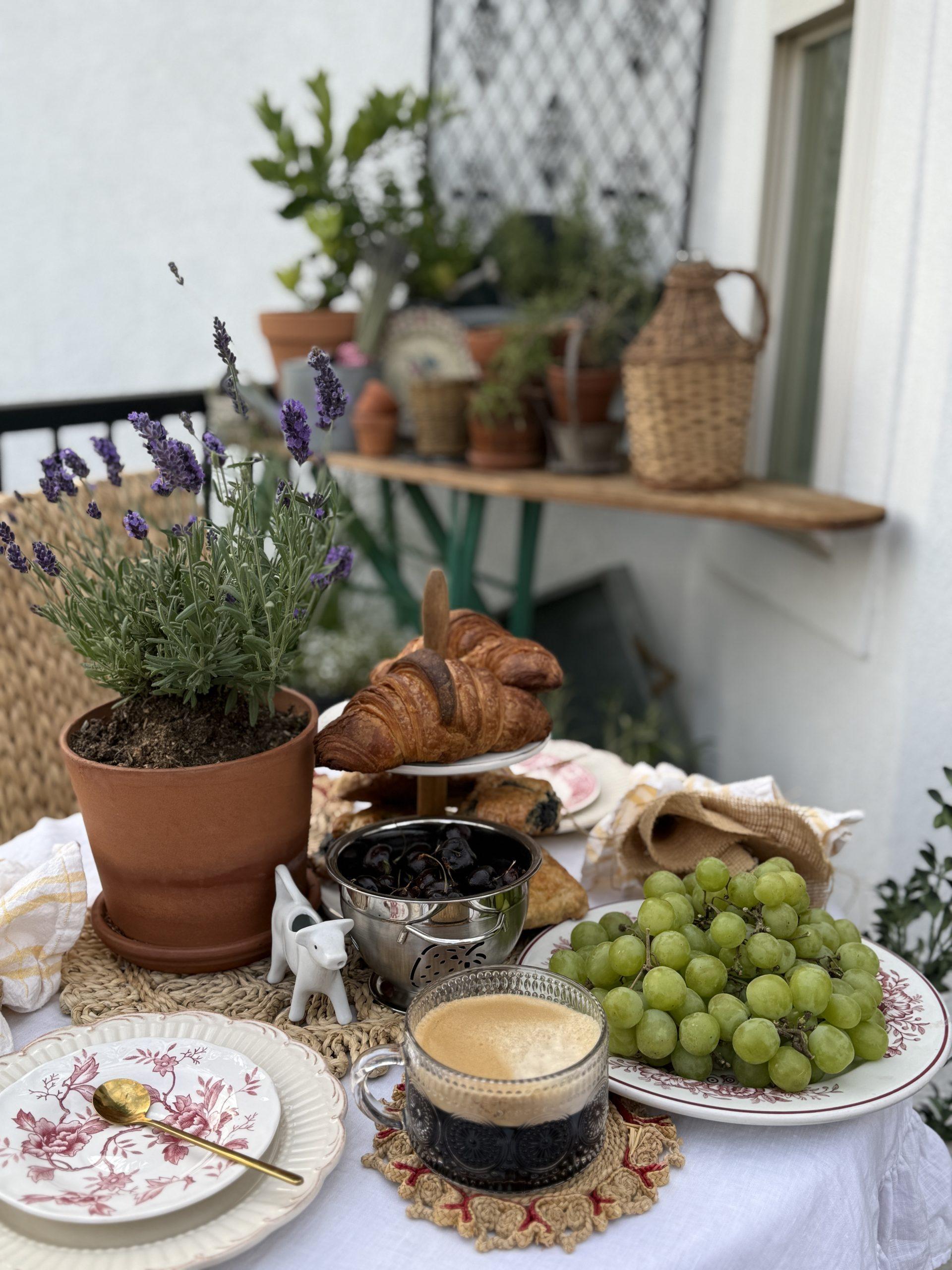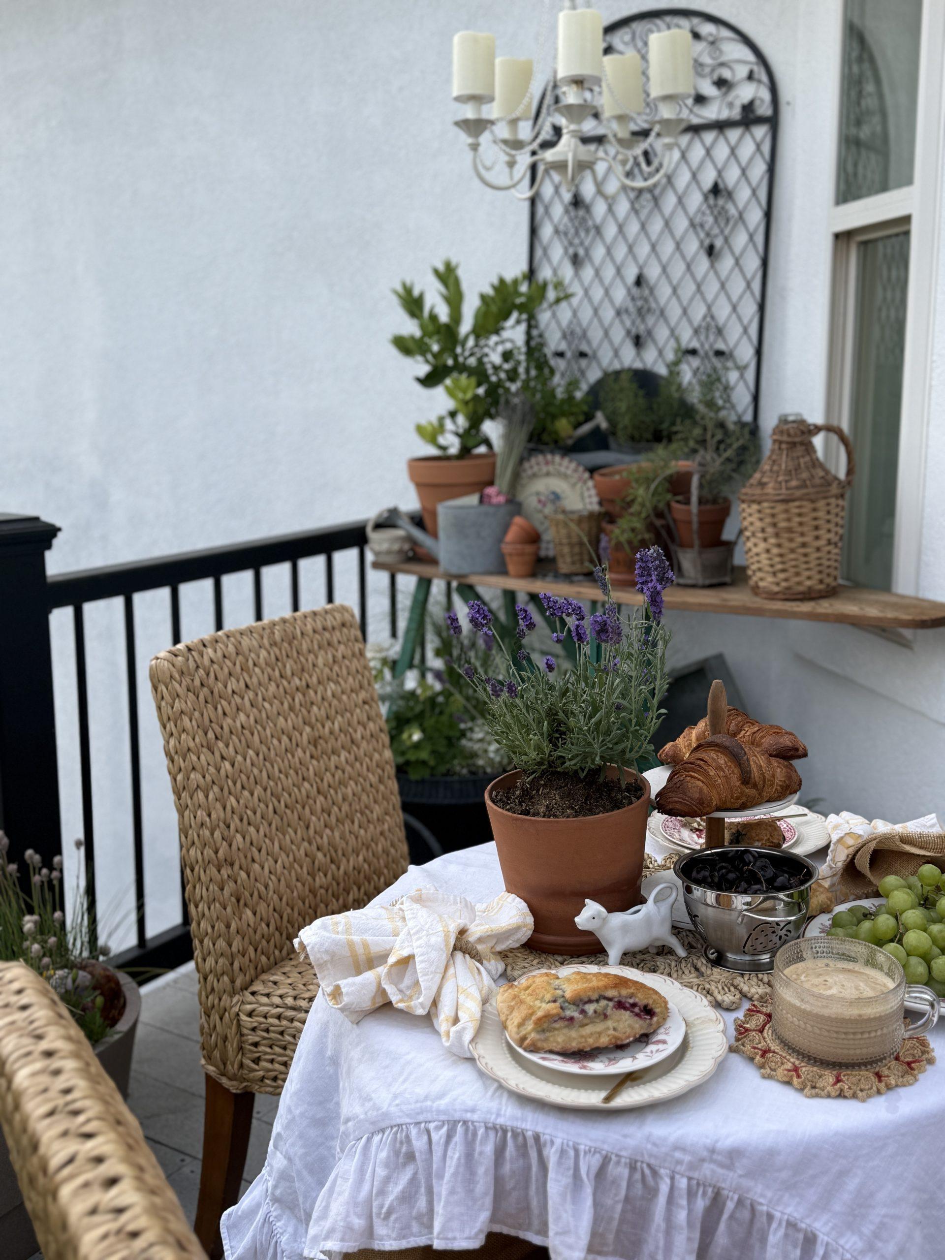 Creating a European-style alfresco dining area on our deck. Perfect for morning Coffee and reading or Evening Drinks and appetizers. Taking a simple spot on your deck or porch can easily become a pretty entertaining space for two. With a little imagination, a few treasures, and a lot of love, a European dining space can be created.