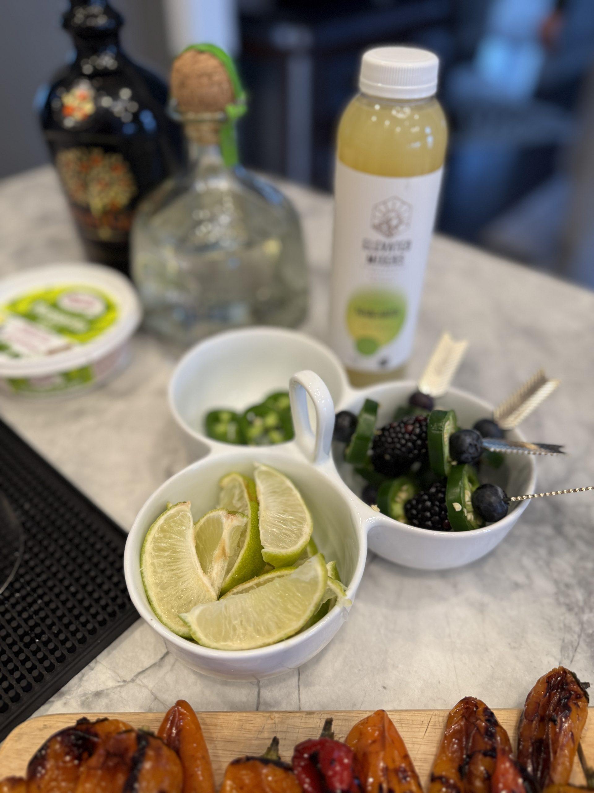 -2 Jalapeños sliced for muddling (reserve some for cocktail skewers)