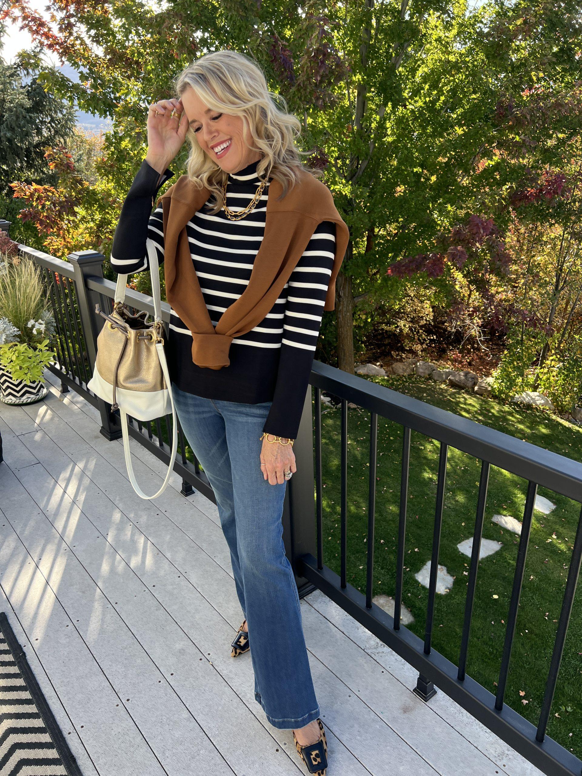 Take a buttery-soft Spanx Air Essentials sweatshirt and wear it over your shoulders for the perfect Fall Transition piece.