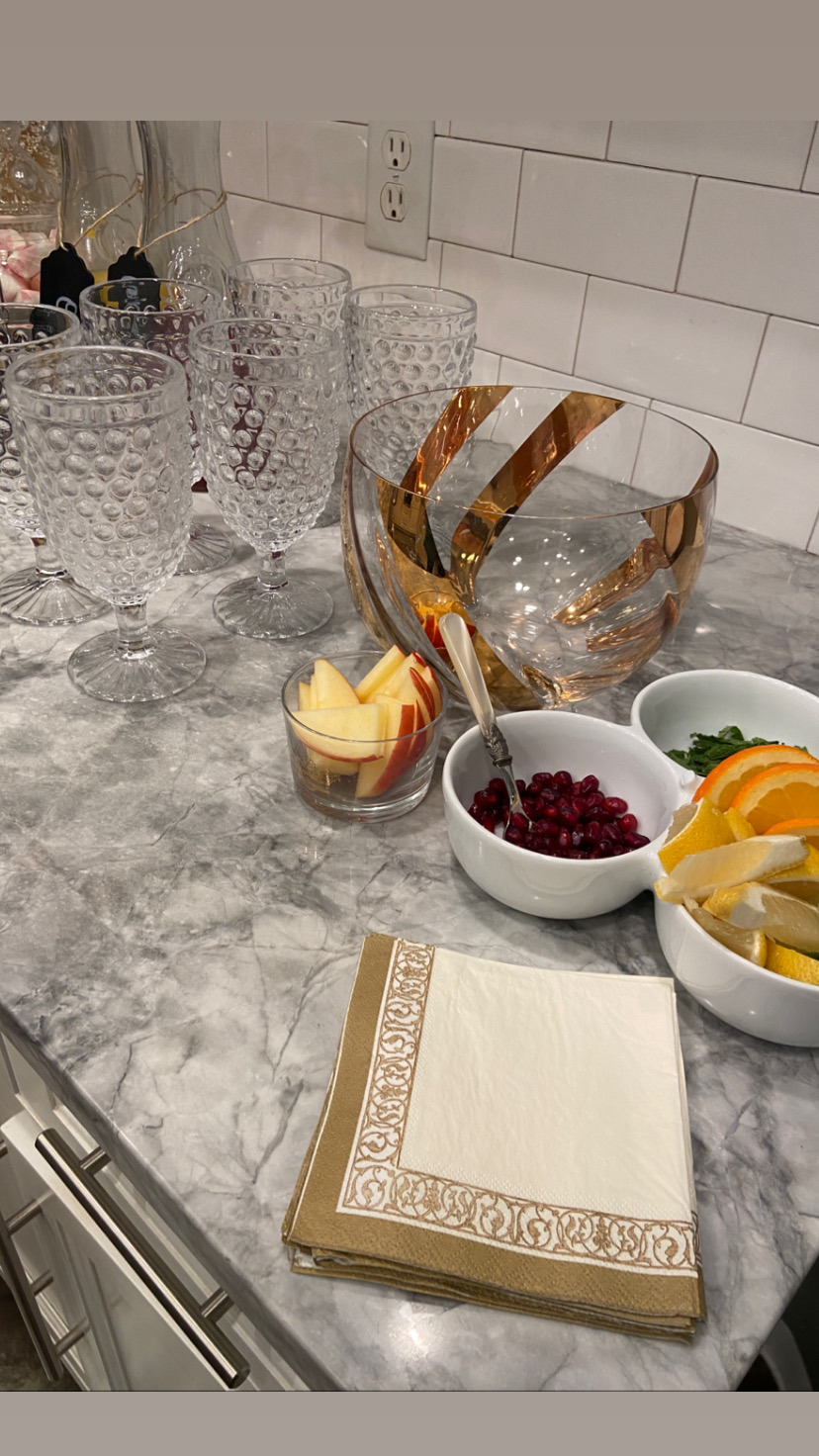 I served this salad last night with my Cheesy potato soup, Recipe HERE, Garlic knots, and Buttered & Sugar Speciality cookies. A local Eden, Ut. Baker. As for drinks, I made a homemade Winter Sangria and a Mimosa Bar, along with a bar cart full of make-your-own cocktail choices.