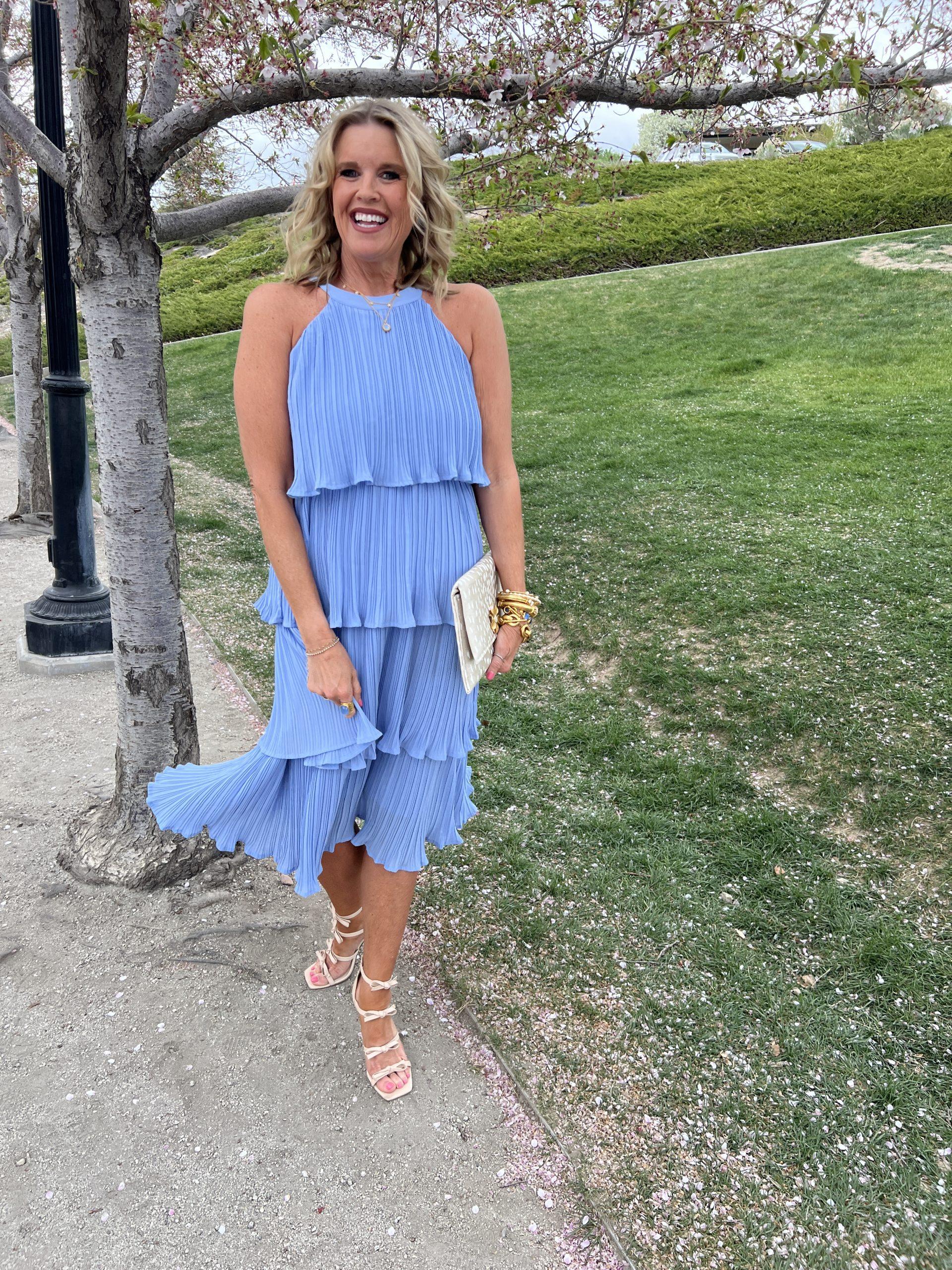 Perfect styling for a Wedding Guest look, Bridal shower, or Mother’s Day brunch. Change the shoes and accessories to a raffia sandal and clutch for a beautiful resort dinner dress.