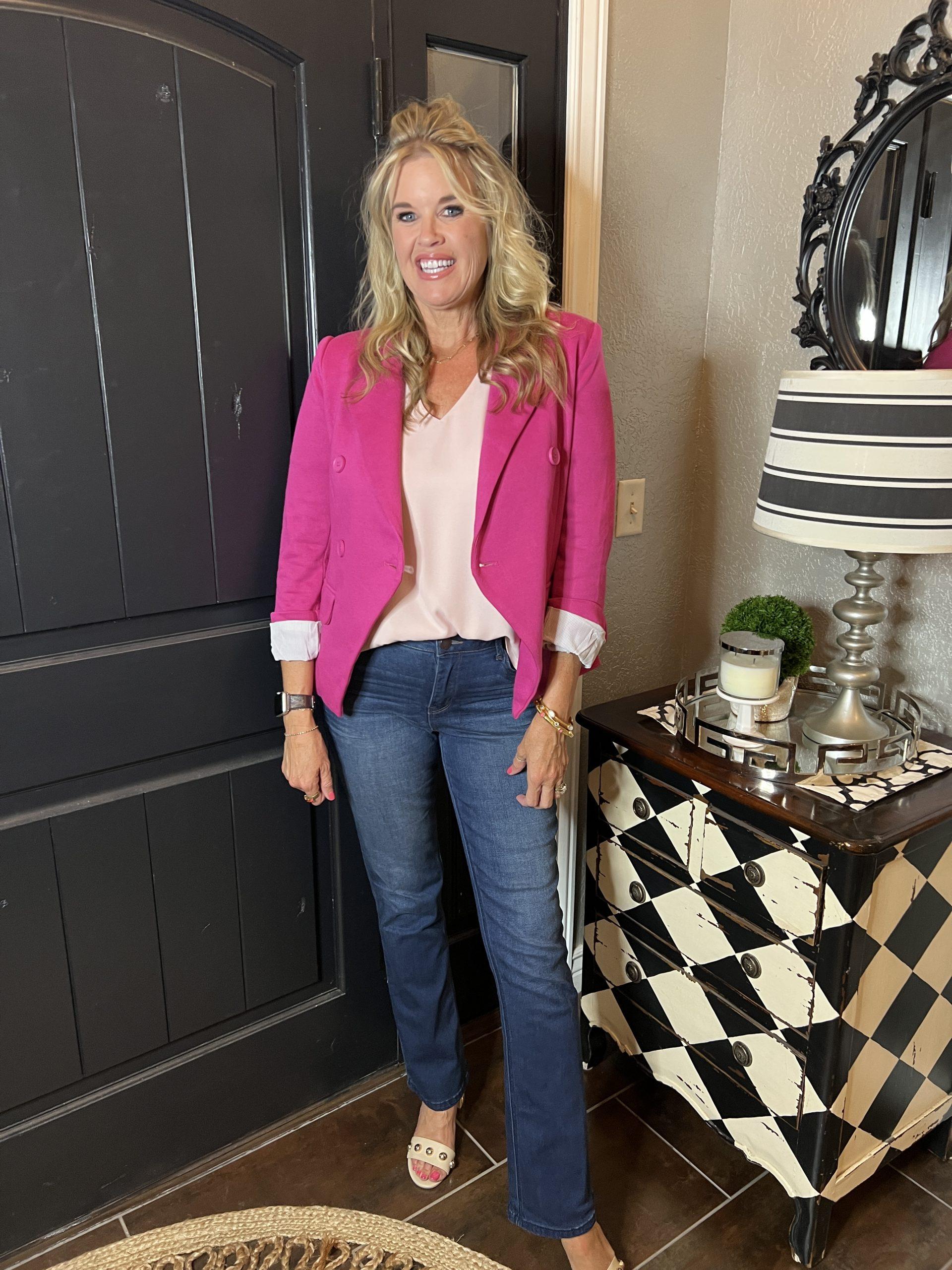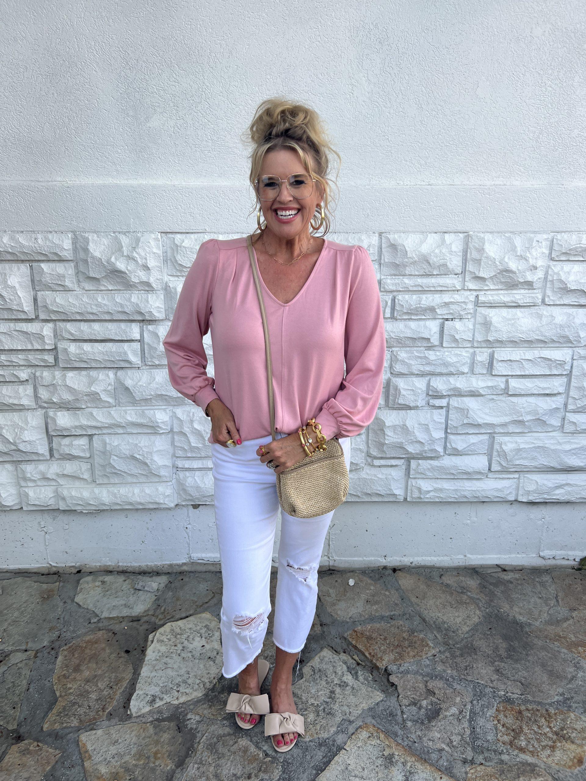 Pink is a great transition color. It’s a color we often wear in the Summer, last year we saw it in a lot of Fall fashion and we will again this year. Pink looks great on every skin tone and pairs well with shades of Fall. Mix pink with creams and browns, and bring those summer pieces into your Fall wardrobe. I have a fun Reel to watch HERE
