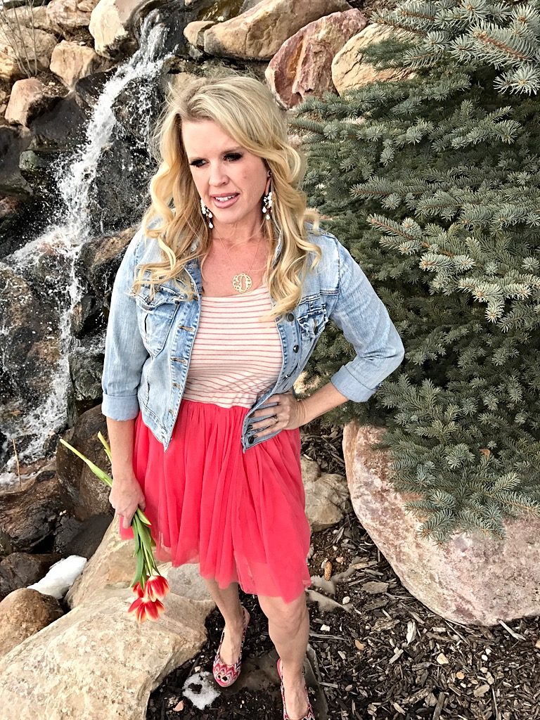 Tulle is a romantic fabric that make for pretty skirt’s and dress not just for party season. You can WEAR it like I have shown above in a dress form. This dress is easy to wear with its Jersey striped tee attached;) The tulle isn’t to puffy which helps to not look so youthful. I paired it with a denim jacket to dress it down even more. added a wedge (old) and some fun Jewelry. (Statement earrings are a big Spring trend) These would be cute as mine are sold out!